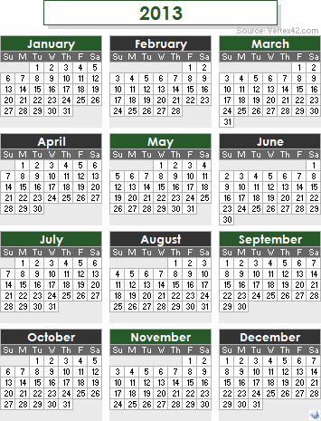 To view a 2013 yearly calendar for reference purposes, see below or click here.