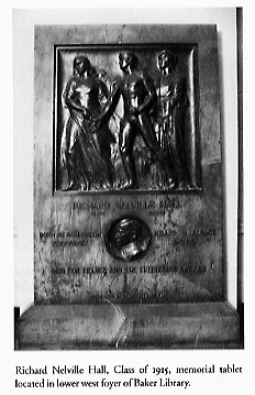 portion in haut relief, memorializing Richard Nelville Hall, 1915, who died on