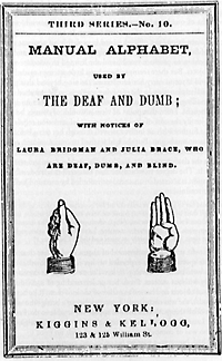 9. Sigourney, Juvenile Miscellany (May 1828), 134; and 'Manual Alphabet, Used by the Deaf and Dumb; with Notices of Laura Bridgman and Julia Brace, Who are Deaf, Dumb, and Blind' (New York: Kiggins and Kellogg, cat 1855), 13.